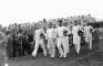 Sporta svētku parādē, Rīgas pilsētas stadionā (tagad Daugavas stadions), soļo paukotāji.