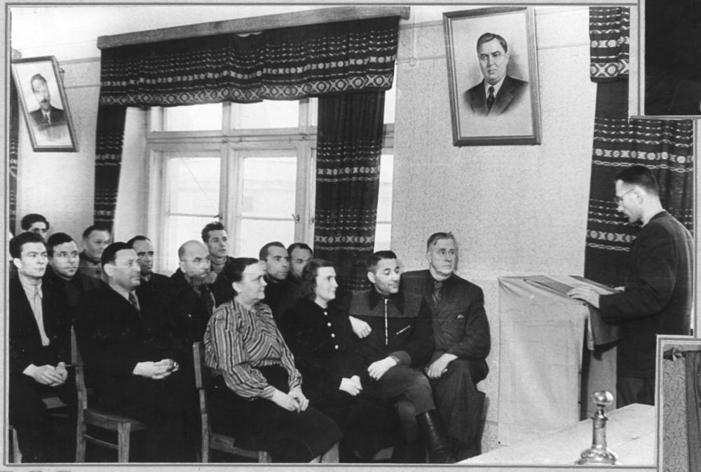 Rīgas Centrālā kolhozu tirgus (Rīgas Centrāltirgus) partijas organizācijas sapulce "sarkanajā stūrītī".