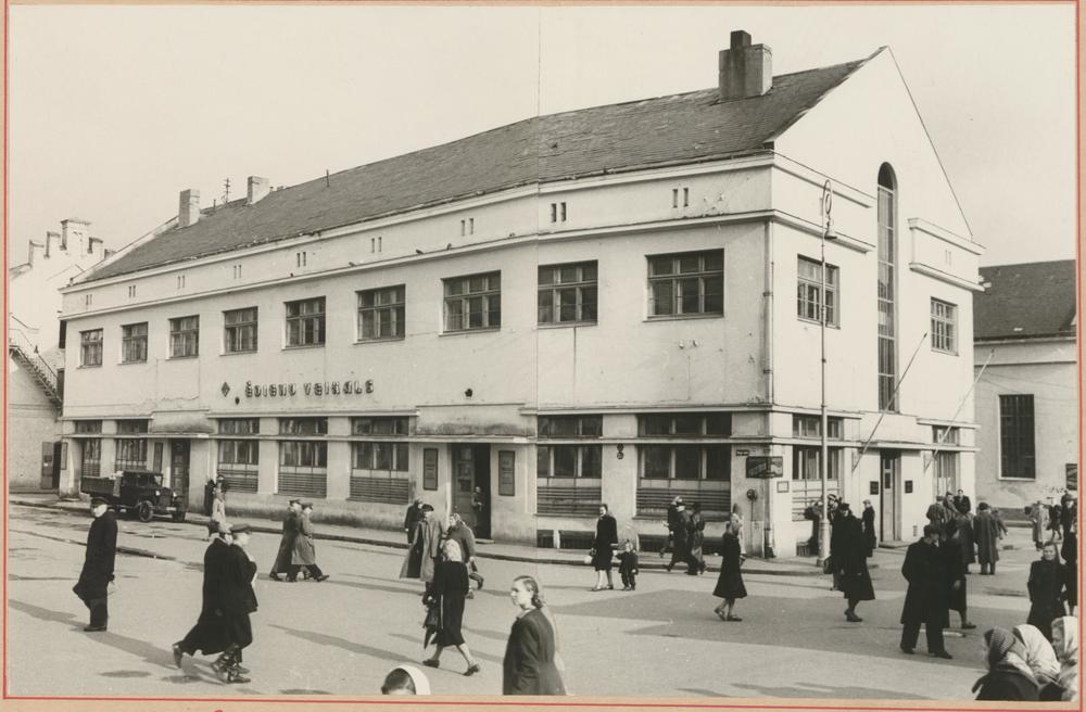 Rīgas Centrālā kolhozu tirgus (Rīgas Centrāltirgus) Pārvaldes ēka ar "Ēdienu veikalu" 1. stāvā.