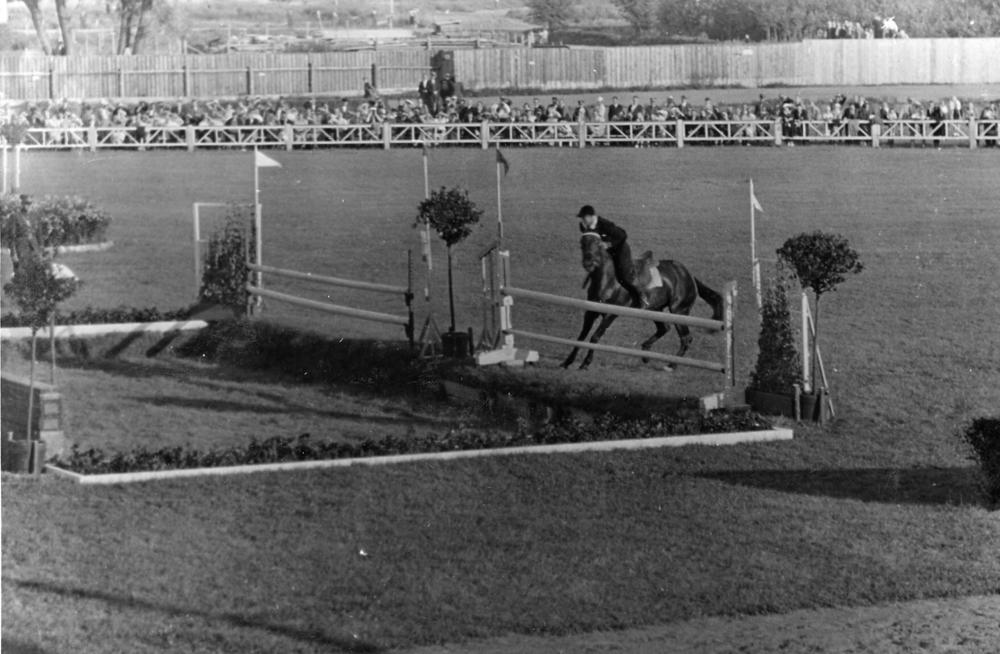 10. Starptautiskās jāšanas sacīkstes Rīgas hipodromā. Sacensības šķēršļu pārvarēšanā pirmajā sacīkšu dienā.