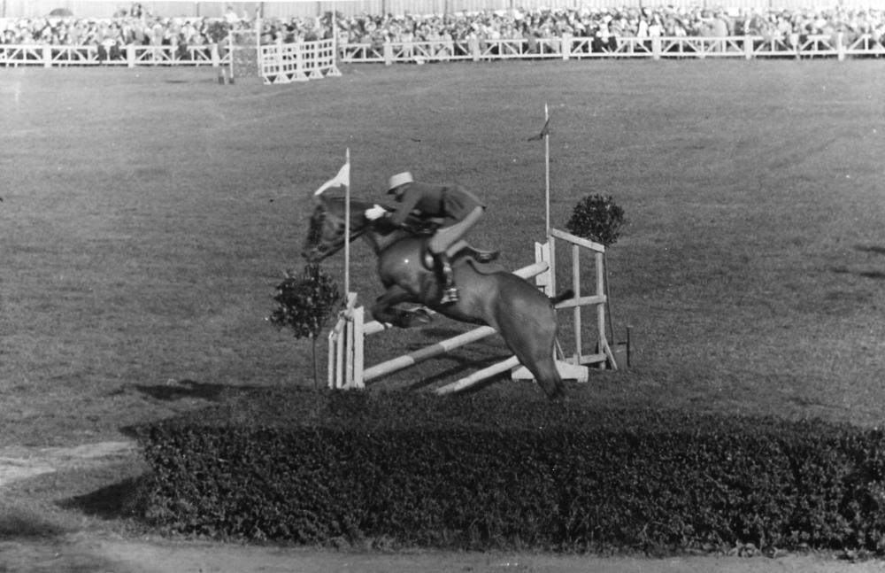 10. Starptautiskās jāšanas sacīkstes Rīgas hipodromā. Sacensības šķēršļu pārvarēšanā pirmajā sacīkšu dienā.