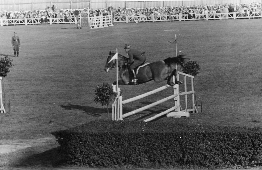 10. Starptautiskās jāšanas sacīkstes Rīgas hipodromā. Sacensības šķēršļu pārvarēšanā pirmajā sacīkšu dienā.