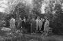 Latvijas Valsts un Ministru prezidents Kārlis Ulmanis iepazīstas ar projektējamās jaunbūves vietu. No kreisās: 3. Ministru prezidenta biedrs Marģers Skujenieks, 4. prezidents Kārlis Ulmanis, 5. Latvijas Kredītbankas direktors Andrejs Bērziņš (?), 6. Rīgas pilsētas galva Roberts Liepiņš, 7. Latvijas Universitātes Veterinārās fakultātes dekāns Voldemārs Brencēns.