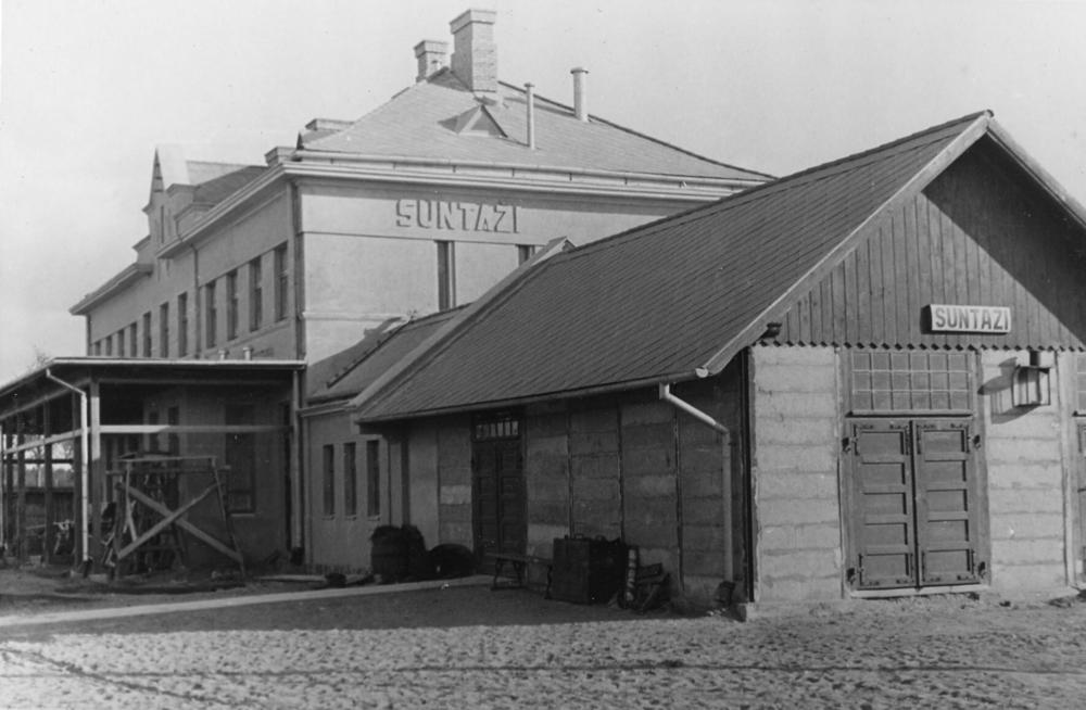 Jaunceltā Suntažu dzelzceļa stacijas ēka ar bagāžas noliktavu. Uz ēkas uzraksts "Suntaži". Stacijas ēka atklāta 1937. gadā, celta pēc inženiera Jāņa Šarlova projekta dzelzceļa līnijas Rīga-Suntaži-Ērgļi izbūves laikā.