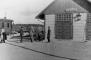 Latvijas Valsts un Ministru prezidents Kārlis Ulmanis (centrā) Suntažu dzelzceļa stacijas jaunceltnē pie noliktavas. Suntažu stacijas ēku cēla dzelzceļa līnijas Rīga-Suntaži-Ērgļi izbūves laikā, atklāja 1937. gadā. No labās: 1. prezidenta sekretārs Jānis Visvaldis Cimermanis (no 1940. gada Jānis Visvaldis Rudums).