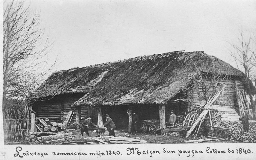 Latviešu zemnieku mājā (1840) malkas talka. Fotoatklātne.