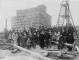 Dzelzceļa būvnieki pie tilta pāri Gaujas upei balsta