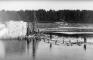 Pagaidu tilta celtniecība pāri Gaujas upei laikā, kad tiek blakus celts dzelzceļa tilts pie Valmieras.