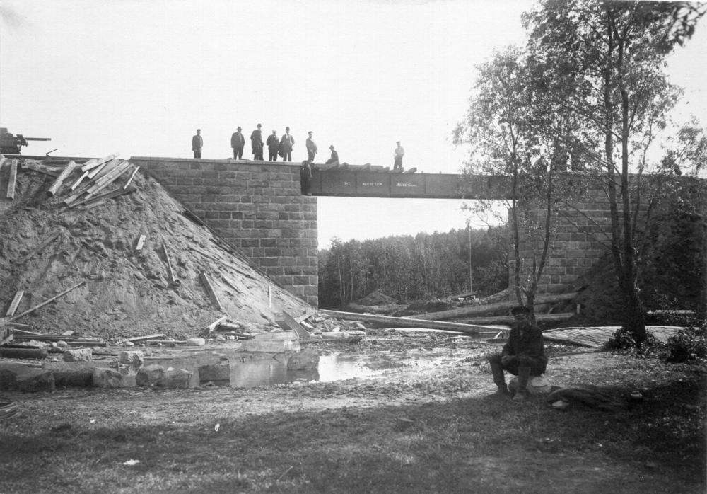 Piecjūdžu dzelzceļa tilta celtniecība pāri Jumaras upei netālu no Beites ciema.
