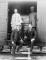 Pirmie trešās klases pasažieri pie vilciena vagona, kas brauca pār Vidzemes guberņā uzceltajam tiltam.