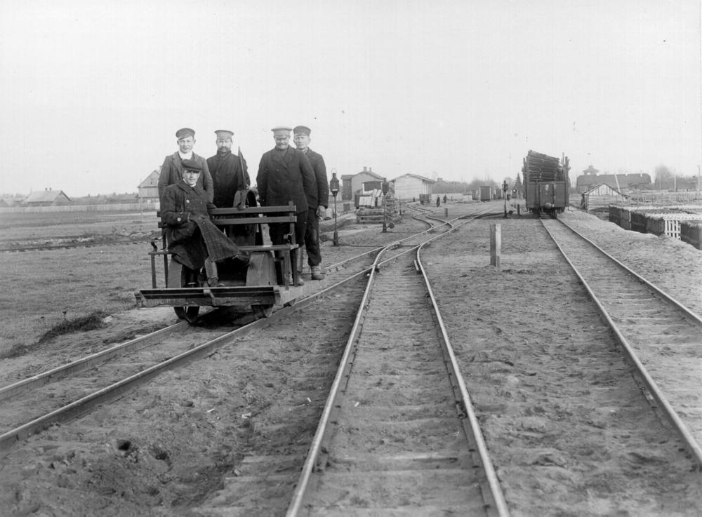 Dzelzceļa darbinieki uz drezīnas pie stacijas Volmara - I (tagad Valmiera).