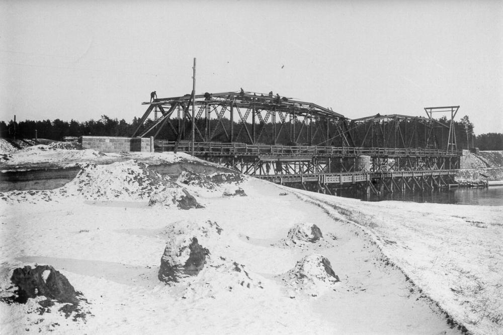 Dzelzceļa tilta celtniecība pāri Gaujas upei