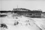Dzelzceļa tilta pāri Gaujas upei celtniecības darbi, metāla konstrukciju uzstādīšana.