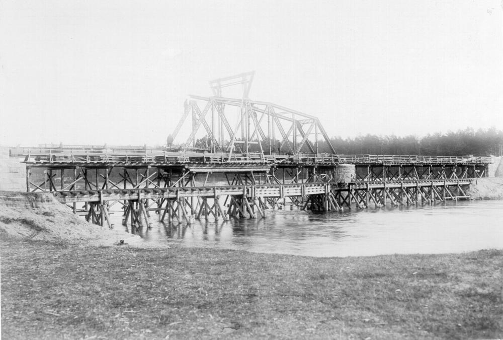 Dzelzceļa tilta celtniecība pāri Gaujas upei