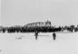 Dzelzceļa tilta pāri Gaujas upei atklāšanas pasākuma dalībnieki pie tilta.
