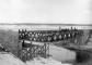 Dzelzceļa tilta celtniecība pāri Salacas upei celtniecības darbi, metāla konstrukciju montāža. Posms šaursliežu dzelzceļa līnijā Ainaži–Valmiera.