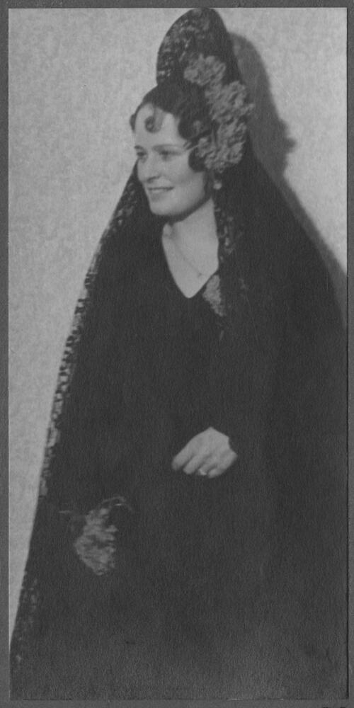 Saviesīgā vakara "Senču kāzas" viešņa Spānijas sūtņa Jesus de Encio y Cortes kundze nacionālajā tērpā.
