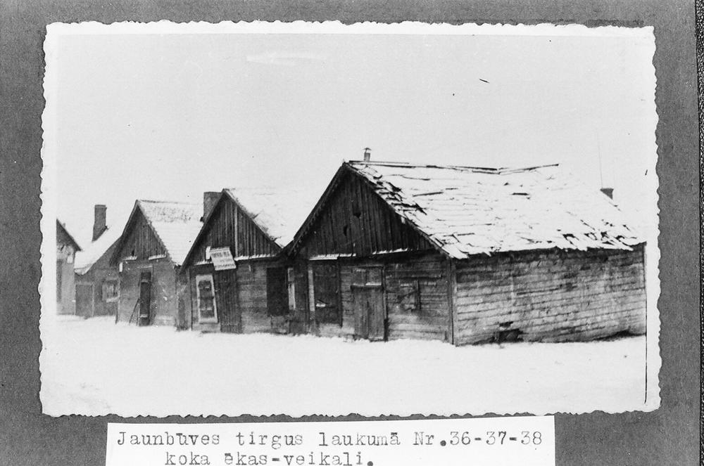 Daugavpils atjaunojamo un nojaucamo būvju skati. Koka jaunbūves - veikali tirgus laukumā Nr.36-38.