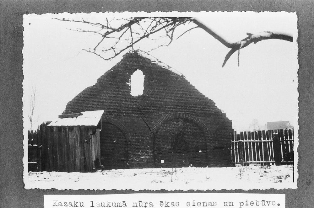 Daugavpils atjaunojamo un nojaucamo būvju skati. Mūra ēkas sienas un piebūve Kazaku laukumā.