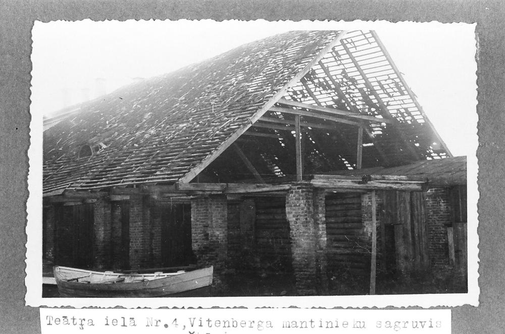 Daugavpils atjaunojamo un nojaucamo būvju skati. Ruvina Vitenberga mantiniekiem piederošā saimniecības ēka Teātra ielā 4.