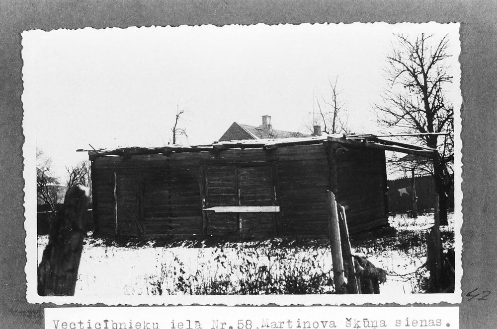 Daugavpils atjaunojamo un nojaucamo būvju skati. Pussagruvušais Martinova šķūnis Vecticībnieku ielā 58.