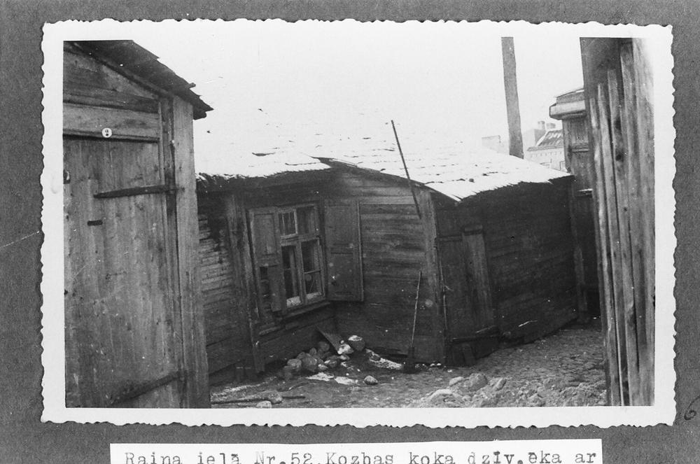 Daugavpils atjaunojamo un nojaucamo būvju skati. Kozbas koka dzīvojamā ēka ar piebūvēm Raiņa ielā 52.