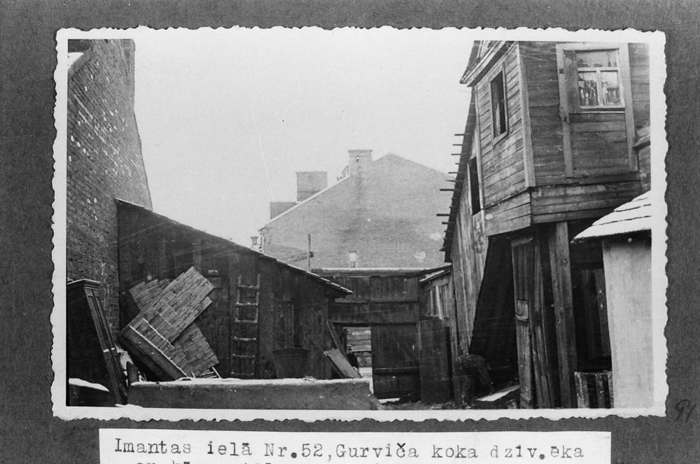 Daugavpils atjaunojamo un nojaucamo būvju skati. Gurviča divstāvu koka dzīvojamā ēka ar slēgtu kāpņu telpu un piebūvēm Imantas ielā 52.