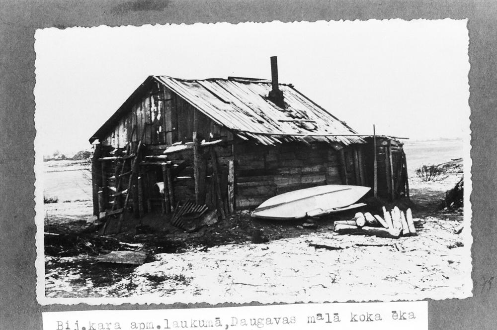 Daugavpils atjaunojamo un nojaucamo būvju skati. Koka ēka ar piebūvi bijušās kara apmetnes laukumā Daugavas malā.