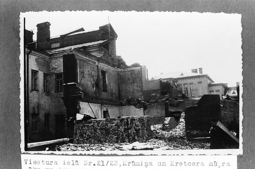 Daugavpils atjaunojamo un nojaucamo būvju skati. Krūmiņa un Kretcera mūra ēka un drupas Viestura ielā 21/23.