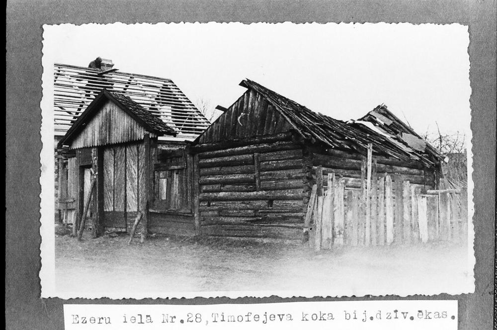 Daugavpils atjaunojamo un nojaucamo būvju skati. Timofejeva koka dzīvojamā un saimniecības ēka ar vārtiem Ezeru ielā 28.