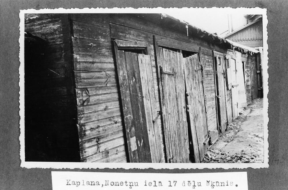 Daugavpils atjaunojamo un nojaucamo būvju skati. Kaplana dēļu šķūnis Nometņu ielā 17.
