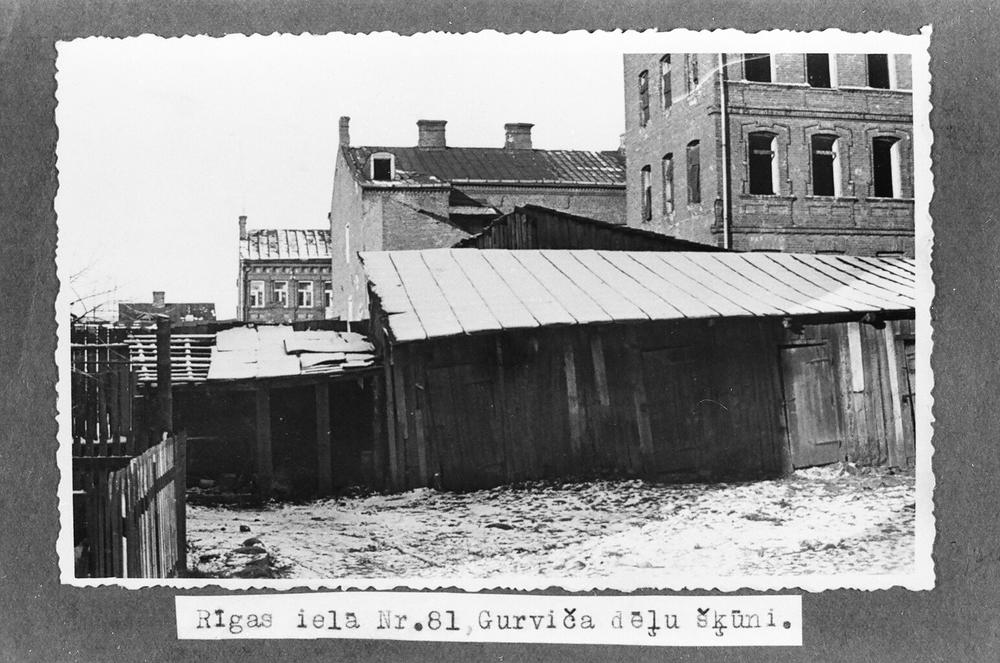 Daugavpils atjaunojamo un nojaucamo būvju skati. Gurviča dēļu šķūņi Rīgas ielā 81.