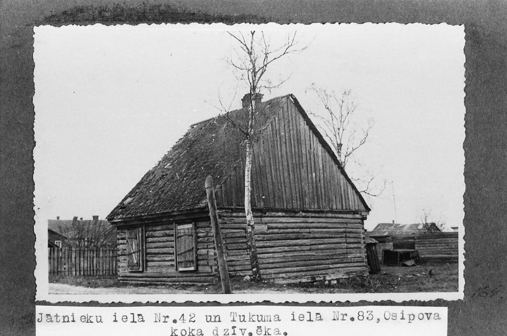 Daugavpils pilsētas kārtībā savedamo un nojaucamo būvju skati. Osipova koka dzīvojamā ēka Jātnieku ielā 42 un Tukuma ielā 83.