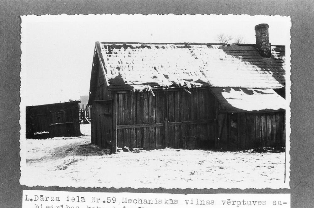 Daugavpils atjaunojamo un nojaucamo būvju skati. Mehāniskās vilnas vērptuves sabiedrībai piederošā koka dzīvojamā ēka Lielā Dārza ielā 59.