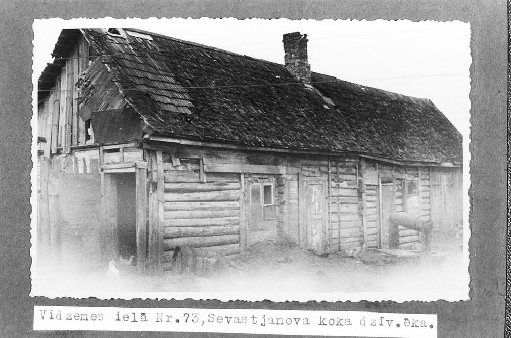 Daugavpils atjaunojamo un nojaucamo būvju skati. Sevastjanova koka dzīvojamā ēka un aka Vidzemes ielā 73.