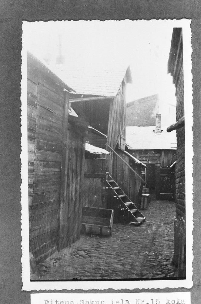 Daugavpils atjaunojamo un nojaucamo būvju skati. Pitema koka dzīvojamā ēka ar kāpnēm Sakņu ielā 15.