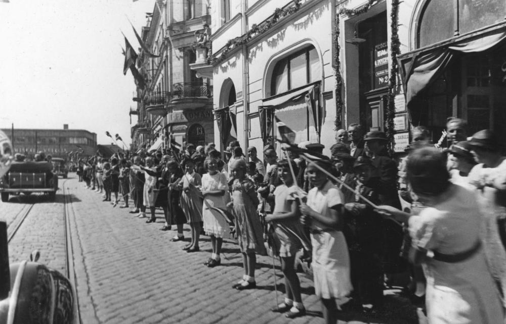 Latvijas Valsts un Ministru prezidenta Kārļa Ulmaņa un valdības pārstāvju vizīte Liepājā, par godu Latvijas Pagaidu valdības ierašanās 18. gadadienai. Liepājnieki sagaida viesus.