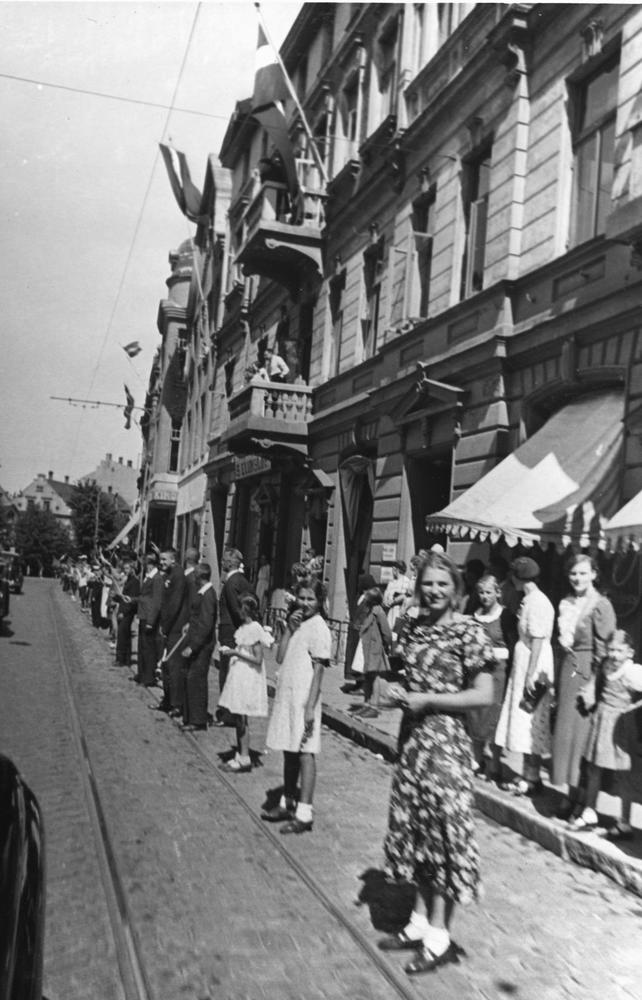 Latvijas Valsts un Ministru prezidenta Kārļa Ulmaņa un valdības pārstāvju vizīte Liepājā, par godu Latvijas Pagaidu valdības ierašanās 18. gadadienai. Liepājnieki sagaida viesus.