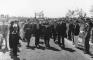 Latvijas Valsts un Ministru prezidenta Kārļa Ulmaņa un valdības pārstāvju vizīte Liepājā, par godu Latvijas Pagaidu valdības ierašanās 18. gadadienai. Viesi ceļā uz Liepājas zvejas ostu. No kreisās: 1. Liepājas pilsētas prefekts (1934-1939) Fricis Šāberts (arī Šaberts), 2. Liepājas zvejnieku kooperatīva priekšnieks Ž. Priedols, 3. Kārlis Ulmanis. 2. rindā centrā kara ministrs, ģenerālis Jānis Balodis.