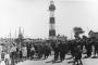 Latvijas Valsts un Ministru prezidenta Kārļa Ulmaņa un valdības pārstāvju vizīte Liepājā, par godu Latvijas Pagaidu valdības ierašanās 18. gadadienai. Liepājas iedzīvotāji sagaida Latvijas Valsts un Ministru prezidentu Kārli Ulmani un valdības pārstāvjus Liepājas zvejas ostā. Priekšplānā (centrā) no kreisās: 1. Liepājas zvejnieku kooperatīva priekšnieks Ž. Priedols, 2. Kārlis Ulmanis. 2. rindā no labās 4. Liepājas pilsētas mērs, Aizputes baptistu draudzes mācītājs Evalds Rimbenieks (arī Ēvalds Rimbenieks). Fonā Liepājas bāka (tagad Liepājas Speciālās ekonomiskās zona, Roņu ielā 9, atklāta 1868. gadā).