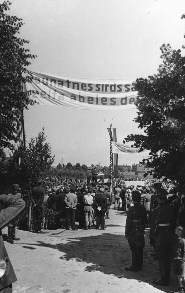 Latvijas Valsts un Ministru prezidenta Kārļa Ulmaņa un valdības pārstāvju vizīte Liepājā, par godu Latvijas Pagaidu valdības ierašanās 18. gadadienai. Svinīgs pasākums, kas veltīts jaunās Liepājas pilsētas 28. janvāra Draudzīga aicinājuma pamatskolas (Jaunliepājā - Krišjāņa Barona un 1905. gada ielas krustojumā, tagad Liepājas 5. vidusskola, Rīgas ielā 50) pamatakmens ielikšanai. Kārlis Ulmanis uzrunā ceremonijas dalībniekus. Goda vārtus rotā uzraksts "Jaunatnes sirds saule mirdz zelta ābeles dēstītājam".