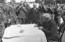 Latvijas Valsts un Ministru prezidenta Kārļa Ulmaņa un valdības pārstāvju vizīte Liepājā, par godu Latvijas Pagaidu valdības ierašanās 18. gadadienai. Svinīgs pasākums, kas veltīts jaunās Liepājas pilsētas 28. janvāra Draudzīga aicinājuma pamatskolas (Jaunliepājā - Krišjāņa Barona un 1905. gada ielas krustojumā, tagad Liepājas 5. vidusskola, Rīgas ielā 50) pamatakmens ielikšanai. Kārlis Ulmanis paraksta aktu par skolas celtniecību. Fonā fotogrāfi.