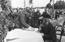 Latvijas Valsts un Ministru prezidenta Kārļa Ulmaņa un valdības pārstāvju vizīte Liepājā, par godu Latvijas Pagaidu valdības ierašanās 18. gadadienai. Svinīgs pasākums, kas veltīts jaunās Liepājas pilsētas 28. janvāra Draudzīga aicinājuma pamatskolas (Jaunliepājā - Krišjāņa Barona un 1905. gada ielas krustojumā, tagad Liepājas 5. vidusskola, Rīgas ielā 50) pamatakmens ielikšanai. Zemkopības ministrs Jānis Birznieks paraksta aktu par skolas celtniecību. Fonā fotogrāfs.