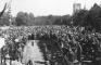 Latvijas Valsts un Ministru prezidenta Kārļa Ulmaņa un valdības pārstāvju vizīte Liepājā, par godu Latvijas Pagaidu valdības ierašanās 18. gadadienai. Svinīgs pasākums, kas veltīts jaunās Liepājas pilsētas 28. janvāra Draudzīga aicinājuma pamatskolas (Jaunliepājā - Krišjāņa Barona un 1905. gada ielas krustojumā, tagad Liepājas 5. vidusskola, Rīgas ielā 50) pamatakmens ielikšanai. Priekšplānā no labās: 1. Kurzemes divīzijas komandieris, ģenerālis Oskars Dankers, 2. Valsts kancelejas direktors Dāvids Rudzītis, 3. (ar rozēm) zemkopības ministrs Jānis Birznieks. Fonā ēkas Jelgavas ielā 62 (Liepājas Lutera baznīca) un 43.