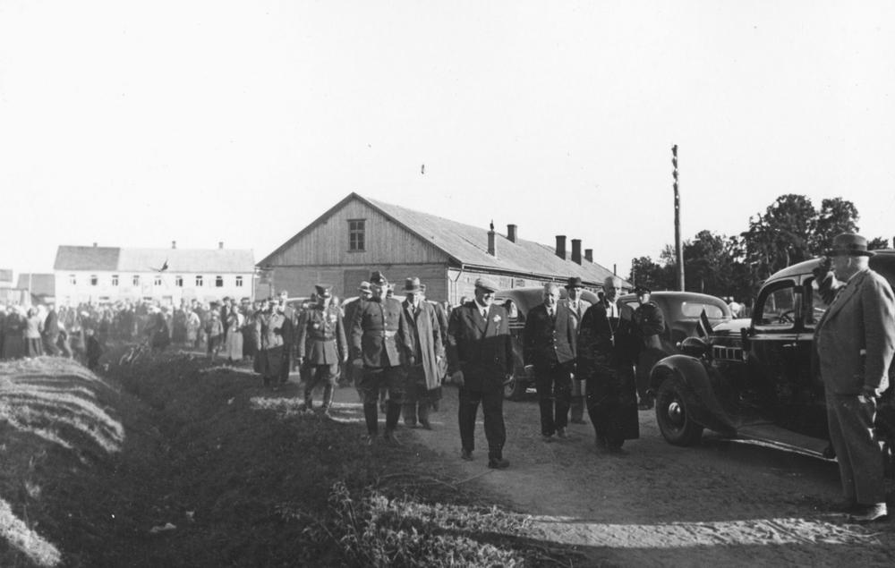 Latvijas Valsts un Ministru prezidenta Kārļa Ulmaņa un valdības pārstāvju vizīte Liepājā, par godu Latvijas Pagaidu valdības ierašanās 18. gadadienai. Valdības pārstāvju ceļojums pa Kurzemes jūrmalu - viesu sagaidīšana Rucavā. 1. rindā no kreisās: 1. Kārlis Ulmanis, 2. Rucavas Evanģēliski luteriskās baznīcas mācītāju Pēteris Roberts Kamols. 2. rindā no kreisās: 1. Liepājas-Aizputes apriņķa priekšnieks Kārlis Tikmanis, 2. Liepājas pilsētas mērs, Aizputes baptistu draudzes mācītājs Evalds Rimbenieks (arī Ēvalds Rimbenieks). 3. rindā no kreisās 1. Kurzemes divīzijas komandieris, ģenerālis Oskars Dankers.