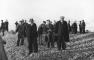 Latvijas Valsts un Ministru prezidenta Kārļa Ulmaņa un valdības pārstāvju vizīte Liepājā, par godu Latvijas Pagaidu valdības ierašanās 18. gadadienai. Valdības pārstāvju ceļojums pa Kurzemes jūrmalu, viesu pastaigājas pa Nidas ciema pludmales krāsainajiem akmeņiem. Priekšplānā no kreisās: 1. Valsts kancelejas direktors Dāvids Rudzītis, 2. Kārlis Ulmanis. Fonā no labās 3. iekšlietu ministrs Vilis Gulbis sarunājas ar vietējiem iedzīvotājiem.