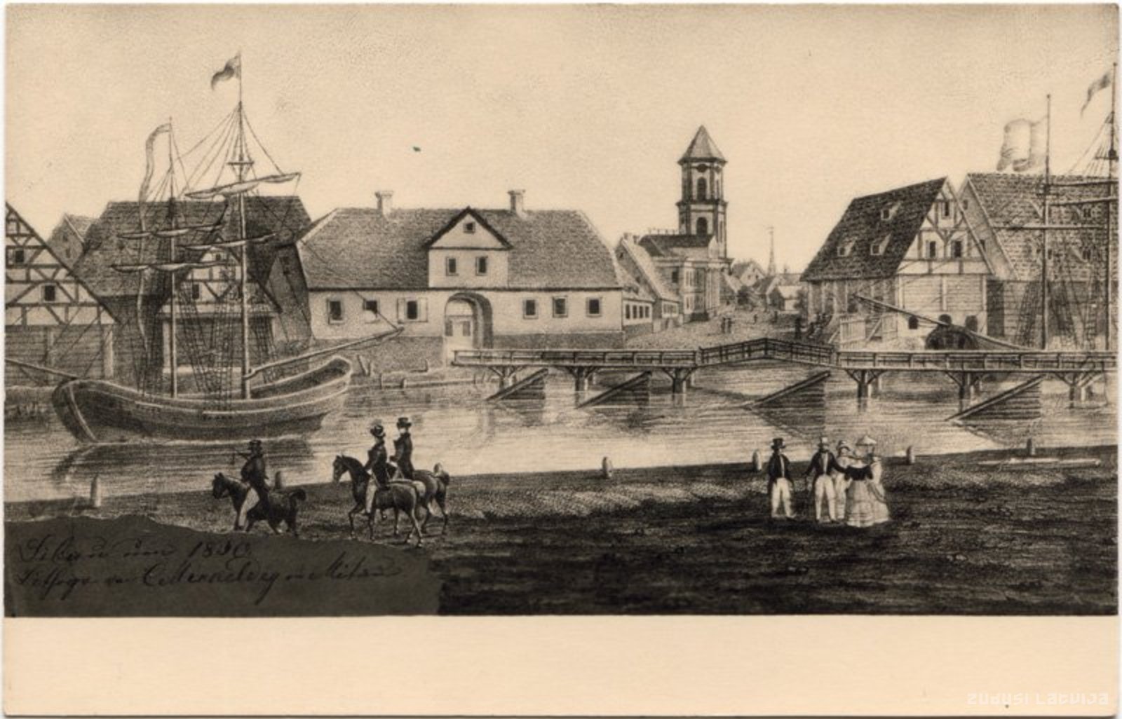 Liepājas osta sākta būvēt 1697. gadā, to pabeidza 1703. gadā. Osta bija 900 līdz 1000 asis gara, 20 līdz 40 asis plata un ap 9 līdz 10 pēdas dziļa. No 1890. gada līdz 1897. gadam Liepājas osta tiek izbūvēta par vienu no labākajām un lielākajām ostām, pie kuras ieejas (no jūras puses) ir 5 kilometrus garš mols. Redzama Liepājas Svētās Trīsvienības luterāņu baznīca