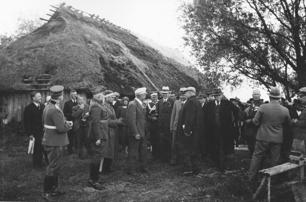 Latvijas Valsts un Ministru prezidenta Kārļa Ulmaņa un valdības pārstāvju vizīte Liepājā, par godu Latvijas Pagaidu valdības ierašanās 18. gadadienai. Valdības pārstāvju ceļojums pa Kurzemes jūrmalu - viesu sagaidīšana kādā Nidas ciema zvejnieka saimniecībā. 1. rindā no kreisās: 1. Liepājas pilsētas prefekts (1934-1939) Fricis Šāberts (arī Šaberts), 2. Liepājas-Aizputes apriņķa priekšnieks Kārlis Tikmanis, 4. Kārlis Ulmanis, 5. kara ministrs, ģenerālis Jānis Balodis, 6. Kurzemes divīzijas komandieris, ģenerālis Oskars Dankers. 2. rindā no kreisās: 3. Kārļa Ulmaņa adjutants, pulkvedis Miervaldis Lūkins, 4. Latvijas armijas štāba priekšnieks, ģenerālis Mārtiņš Hartmanis, 5. iekšlietu ministrs Vilis Gulbis, 6. zemkopības ministrs Jānis Birznieks.