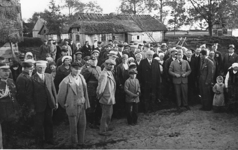 Latvijas Valsts un Ministru prezidenta Kārļa Ulmaņa un valdības pārstāvju vizīte Liepājā, par godu Latvijas Pagaidu valdības ierašanās 18. gadadienai. Valdības pārstāvju ceļojums pa Kurzemes jūrmalu, viesi kādā Nidas ciema zvejnieka saimniecībā. 1. rindā no kreisās: 1. Latvijas armijas štāba priekšnieks, ģenerālis Mārtiņš Hartmanis, 6. Kārlis Ulmanis, 7. zemkopības ministrs Jānis Birznieks. 2. rindā no kreisās: 3. iekšlietu ministrs Vilis Gulbis, 8. Liepājas pilsētas mērs, Aizputes baptistu draudzes mācītājs Evalds Rimbenieks (arī Ēvalds Rimbenieks).