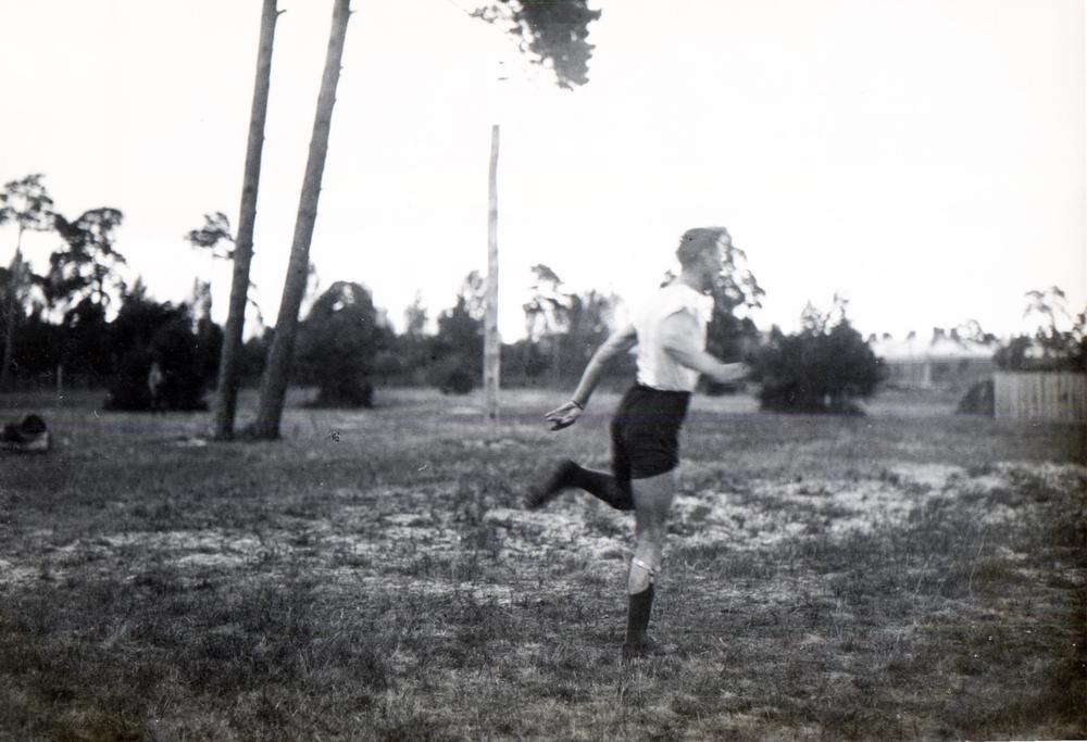 Liepājas 300 gadu jubilejas pasākuma organizētājās sacensībās sportists skrien pa laukumu.